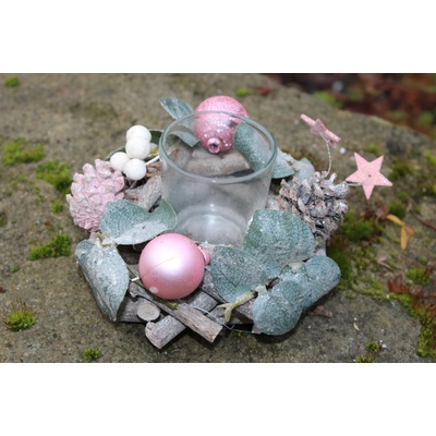 Adventní svícen podlouhlý s růžovými kuličkami 51 cm