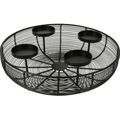 Svícen na 4 svíčky kulatý, pr. 36 x 10 cm, kovový drátěný ČER. průměr: 36 cm výška: 10 cm materiál: černý ocelový drát barva: černá Tento svícen je krásný celoroční doplněk...
