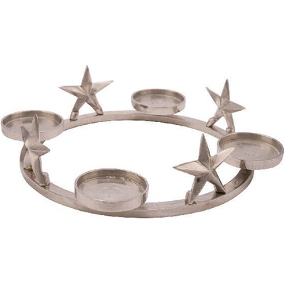Svícen na 4 svíčky ve tvaru adventního věnce. Barva: zlatá Materiál: kov Hmotnost: 0,94 kgDoplňující popis:31x31x5 cm (šírka x hĺbka x výška)