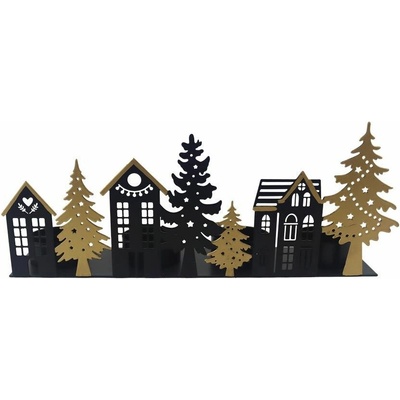 Dekorační adventní svícen. Rozměry: 26 x 5,5 x 10,5 cm. Materiál: kov. Barva: černá, zlatá. Upozornění: Nenechávejte zapálené svíčky bez dozoru. Dekorace je určena do...