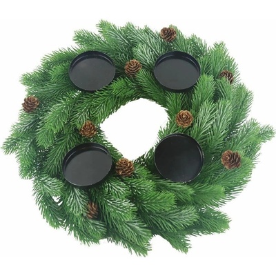 Adventní svícen. Rozměry: 40 x 40 x 8 cm. Materiál: plast, kov. Barva: zelená, hnědá, černá. Upozornění: Nenechávejte zapálené svíčky bez dozoru. Dekorace je určena do...