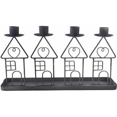 Dekorační adventní svícen. Rozměry: 30 x 8,5 x 17 cm. Materiál: kov. Barva: šedá. Upozornění: Nenechávejte zapálené svíčky bez dozoru. Dekorace je určena do interiéru. .