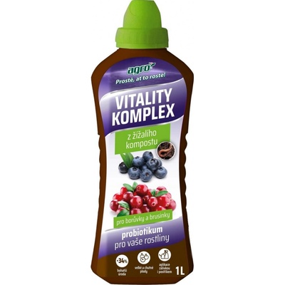 AGRO Vitality Komplex borůvka, brusinka, probiotikum 1 l. objem: 1 l AGRO Vitality Komplex je vynikajícím pomocníkem k posílení imunity rostlin, obnovení jejich vitality a...