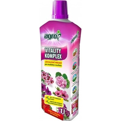AGRO Vitality komplex Muškát a surfinie je jedinečný přípravek ideální pro všechny druhy balkónových rostlin jako jsou muškáty, surfinie, begonie, fuchsie, milion bells aj....
