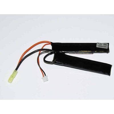 Kvalitní Li-Pol baterie od značky TITAN s kapacitou 1200mAh a napětím 7.4v ve velmi kompaktní velikosti, pohodlně se vejde do tubusu pažby M4, předpažbí, nebo pod kryty AK....