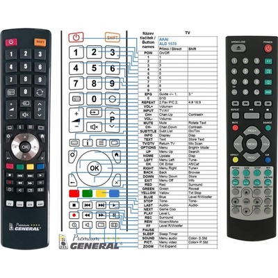Náhradní dálkový ovladač AKAI ALD1570, ALD1575 - 100procent náhrada 1:1 za originální dálkový ovladač. Dálkový ovladač je určen pro tyto modely AKAI: ALD1410, ALD1570, ALD1575,...
