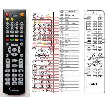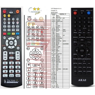 Náhradní dálkový ovladač AKAI AMD340 - 100procent náhrada za originál. Pro modely: AMD340 Ovladač je dodáván ve verzi ovladače General DVD-TV (zobrazen vlevo). Doplňková...