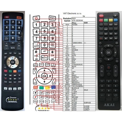 Náhradní dálkový ovladač Akai ATE-32D904K - 100procent náhrada za originál. Pro modely: ATE-32D904K, ATE32D904K Ovladač je dodáván ve verzi NEUNIVERZÁLNÍHO ovladače General...