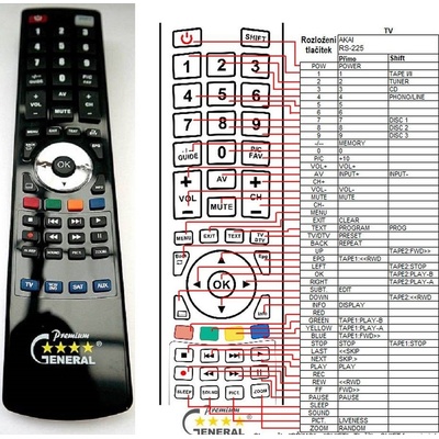 Náhradní dálkový ovladač Akai RS-225 - 100procent náhrada za originál. Zachovány všechny funkce původního ovladače. Nejde o univerzální ovladač, ale o ovladač, který je...