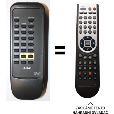 Náhradní dálkový ovladač pro AKAI RCA57, RCA67, AM57, AM67. NEPOTŘEBUJE KÓDY
