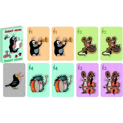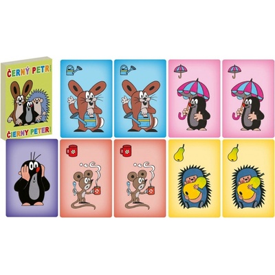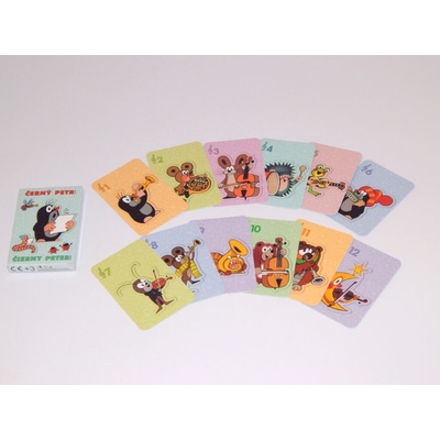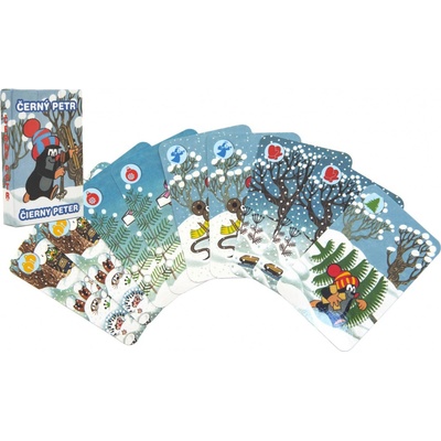 Dětské karty pro hru Černý Petr s obrázky Krtečka od ilustrátora Zdeňka Milera. Krabička obsahuje i podrobný návod a karty mají na rubové straně mírně zdrsnělý povrch pro lepší manipulaci s nimi. Věk: 3+