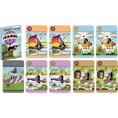 Hrací karty pro dětskou hru Černý Petr s obrázky z oblíbeného kresleného seriálu Krteček. Všechny karty se rozdají zúčastněným hráčům tak, aby nebylo vidět, kdo Černého Petra do