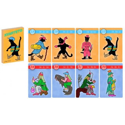 Dětské hrací karty pro hru kvarteto, s ilustracemi s motivem Kocour Mikeš. Baleno v papírové krabičce. Kvarteto se hraje se 32 kartami s tematicky zaměřenými obrázky. Karty jsou rozděleny do 8 skupin po čtyřech tak, aby k sobě obrázky ve čtveřici logicky patřily. Tyto...