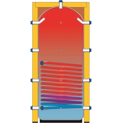 akumulační nádoba pro ukládání otopné vody / akumulaci tepla v uzavřených systémech vytápění s jedním pevně integrovaným trubkovým výměníkem materiál vysoce kvalitní ocel s vnější povrchovou úpravou lakováním tepelná izolace z měkkého polyesterového vlákna typ VLIES...