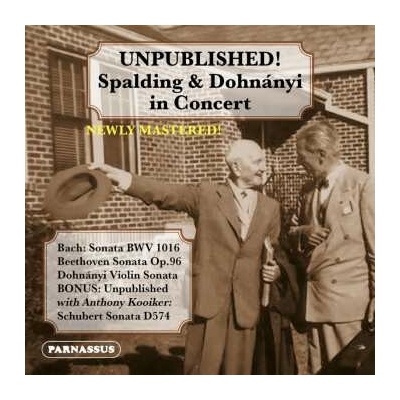 Spalding,albert / Ernst Von Dohnanyi: Unpublished verze na CD v standardní edici. Toto konkrétní vydání vyšlo ve vydavatelství Parnassus Records (3) dne 5. září 2025. Album.