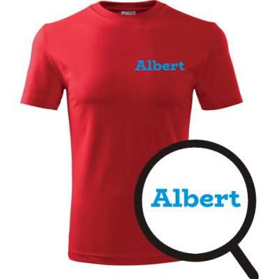 Červené tričko Albert. nabízené velikosti jsou S,M,L,XL,XXL,XXXL. Tričko je zařazeno v sekcích Trička se jménem na hrudi pánská, . Technologie tisku: Tisk na tričko je...