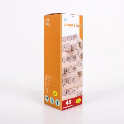 Dřevěná jenga věž s čísly! Obměna klasické hry Jenga, kde jsou na dřevěných kamenech čísla a obsahem hry jsou i hrací kostky. Můžete hrát základní hru jenga, nebo použít kostky a pohrát si s čísly.