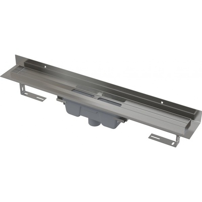 Alcadrain Wall Low podlahový žlab s okrajem pro plný rošt a s pevným límcem ke stěně 85 cm, pro plné rošty, rošt FLOOR na vložení dlažby a hranolového roštu GAP, materiál nerezová ocel. Sifon je napevno spojen se žlabem. Celková stavební výška 110 – 168 mm. UPOZORNĚNÍ:...
