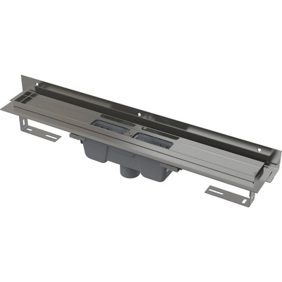 Alcadrain FLEXIBLE LOW podlahový žlab s okrajem, pro perforovaný rošt o délce 55 cm s nastavitelným límcem ke stěně, materiál nerezová ocel. Sifon je vyrobený z polypropylenu, napevno spojen se žlabem. Rošt není standardní součástí dodávky a je nutno je dokoupit...