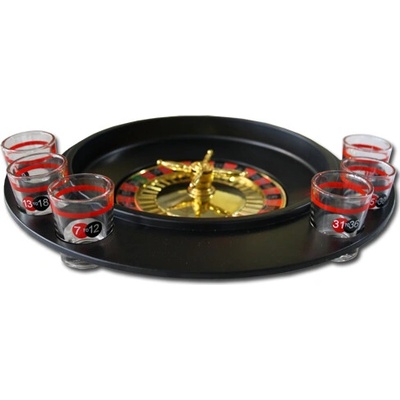 Alkoholová hra Ruleta Deluxe – set s 15 skleničkami a 2 kuličkami je zábavná párty hra, při které se roztočí ruleta a výsledek určí, kdo vypije svůj drink.