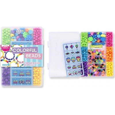 Sada korálků na výrobu vlastních náramků a náhrdelníků. Sada obsahuje korálky různých barev a tvarů, šňůrku. Praktické balení kufříku s uchem a dělenými přihrádkami na korálky....