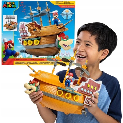 Herní sada Super Mario – vzducholoď, vybavená děly, otočnými vrtulemi, koly a autentickými herními zvuky a také obsahuje 5 cm figurku Maria. Otáčením vzducholodí aktivujte...