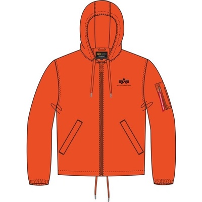 Alpha Windbreaker w.o. Back Print jednoduchá lehká větrovka se síťovanou podšívkou a zapínáním na zip kapuce stahovatelná šňůrkou šňůrka pro stažení bundy v pase logo Alpha...