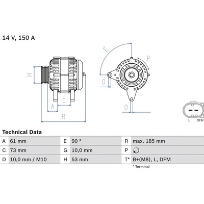 oltage [V] : 12Courant de charge de l'alternateur (A) : 140Poulies : avec poulie a gorgeNombre de stries : 6Poulie pour courroies - O [mm] : 54Pince : B+ M8ID de la version de...
