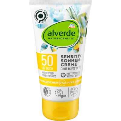 alverde NATURKOSMETIK Sensitiv krém na opalování OF50 s voděodolným složením* poskytuje vaší pokožce okamžitou a spolehlivou ochranu. S měsíčkem lékařským, jojobou a čistě...