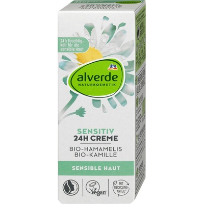 alverde Sensitiv denní pleťový krém obohacen o přírodní výtažek z listů vilínu a květů heřmánku zklidňuje citlivou a suchou pleť a intenzivně ji hydratuje. Účinné složení s...