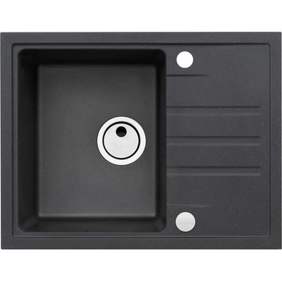 Granitový dřez s odkapem, provedení černá 91, otočný, rozměr 620 x 480 mm, vana 328 x 405 x 200 mm, horní nebo spodní montáž, minimálně 45 cm skříňka, 2 otvory z výroby.