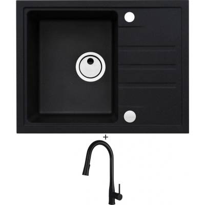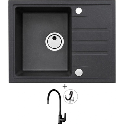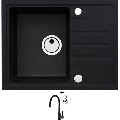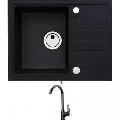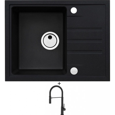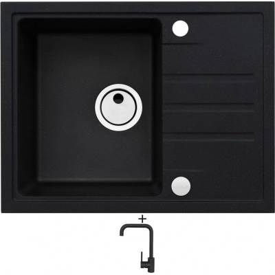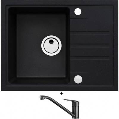 Cenově zvýhodněný set dřezu a baterie Alveus - obsahuje granitový dřez s odkapem Intermezzo 30 Black 91 a baterii Mintas Černá/Kartáčovaná ocel.