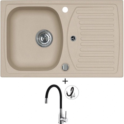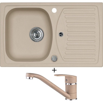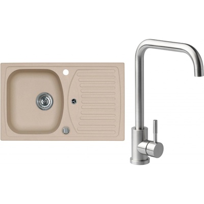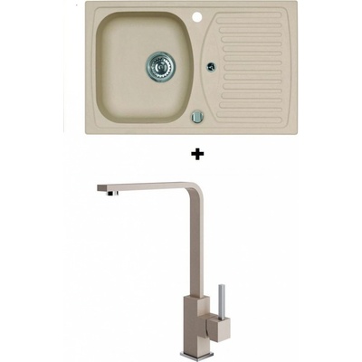 Cenově zvýhodněný set dřezu a baterie Alveus - obsahuje granitový dřez s odkapem Record 30 Beige 55 a baterii Mintas Béžová/Kartáčovaná ocel.