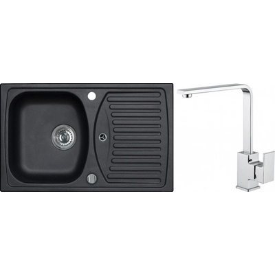 Zvýhodněný set dřezu Alveus Record 30 + baterie Tonia. Granitový dřez s odkapem, otočný, rozměr 780 x 480 mm, vana 360 x 400 x 160 mm, horní montáž, skříňka od 500 mm. Tlaková dřezová baterie, provedení černá 91, rozměr 320 x 176mm, bez sprchy.