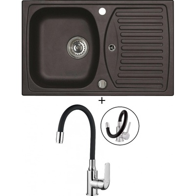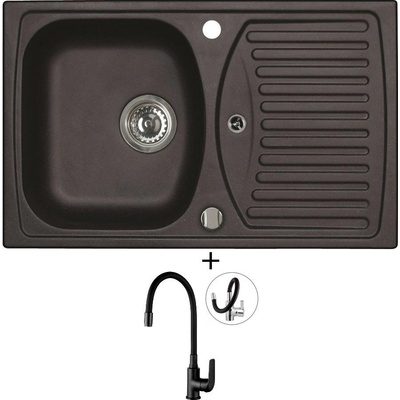 Cenově zvýhodněný set dřezu a baterie Alveus - obsahuje granitový dřez s odkapem Record 30 Black 91 a baterii Mintas Černá matná.