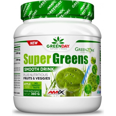 Amix SuperGreens Drink 360 g GreenDay® Super Greens Smooth Drink je výjimečný doplněk stravy, který vám umožní připravit si lahodný zelený nápoj plný vitalitu a antioxidantů. Tento Super Greens obsahuje naši speciální směs Super Greens Komplex, doplněnou o VitaVeggie®...