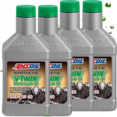 Amsoil Synthetic V-Twin Motorcycle Oil 20W-40 balení 1 US Quart = 0,946 litru • API SM • JASO MA • ILSAC GF-4 AMSOIL 15W-60 a 20W-40 Synthetic V-Twin Motorcycle Oil poskytují...