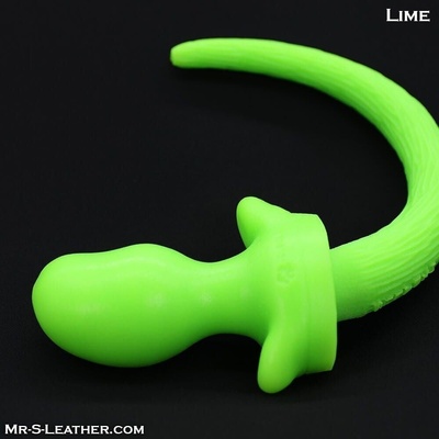 Černo-zelený anální kolík se psím ocasem který svítí ve tmě. Zúžená základna pro pohodlné a jisté držení. Celková délka 32 cm, použitelná délka 7,5 cm a průměr 3,2 cm.