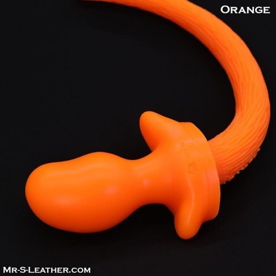 Černo-oranžový anální kolík se psím ocasem Slave4master, zúžená základna pro pohodlné a jisté držení. Celková délka 32 cm, použitelná délka 7,5 cm a průměr 3,1 cm.