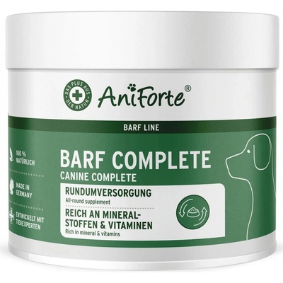 - TOP PRODUKT od předního německého výrobce Aniforte. - AniForte® BARF Complete je 100% přírodní doplněk vyvinutý speciálně pro psy, kteří jsou krmeni syrovou stravou (BARF...