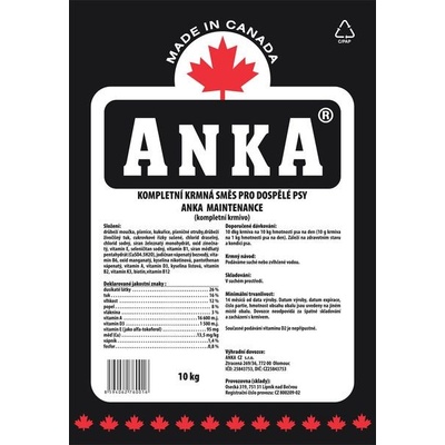 Kompletní krmivo Anka Maintenance je špičková strava pro dospělé psy. Vysoký obsah všech důležitých složek přináší kompletní výživu v menších porcích, čímž snižuje i objem stolice. Krmiva Anka byla vyvinuta, aby odpovídala výživovým požadavkům vašeho miláčka v 21....