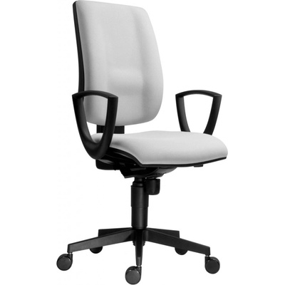 Kancelářská židle značky Antares typ 1380 SYN Flute. Základní provedení židle: nylonový kříž, čalouněný sedák i opěrák s volitelným typem látky a barvou, plastová kolečka na kobercové podlahy, plynový píst, synchronní mechanika s hloubkovým posuvem sedáku a...