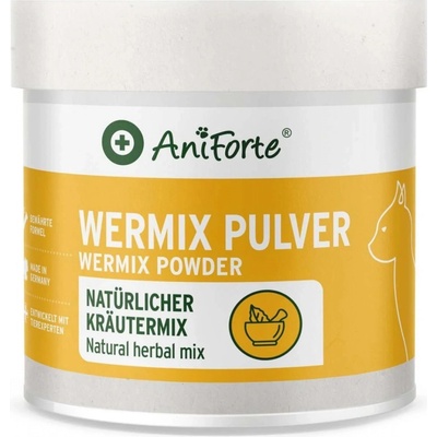 WermiX pro kočky - bylinná směs na podporu po vyléčeném napadení červy AniForte® WermiX prášek obsahuje pouze rostlinné složky jako je sláma, petržel, pelyněk a mleté skořápky...