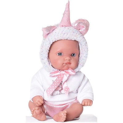 Celovinylová panenka s vlásky po celé hlavě. Balena v dárkové krabici. Odstíny oblečku se mohou trochu lišit. Hračka je vhodná pro děti od 3 let.