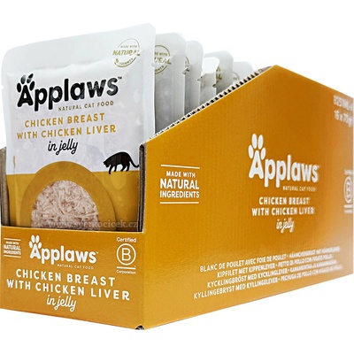 Kapsička Applaws Cat - lahodná a šťavnatá kapsička s kuřecím masem a játry v lahodném aspiku.