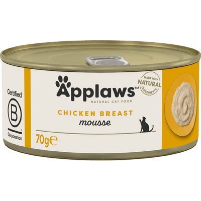 Zvýhodněné balení 6x70g. Applaws Mousse Kuřecí prsa nabízí jemně našlehané maso pro ty nejmlsnější jazýčky. Doplňkové krmivo pro kočky čistě z přírodních surovin. Až 44% masa v...