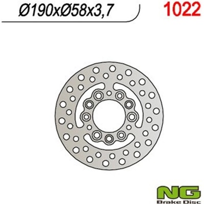 Průměr (mm) : Vnější 190, Vnitřní : 58, Tloušťka : 3,7, Počet děr : 3, Průměr děr : MH