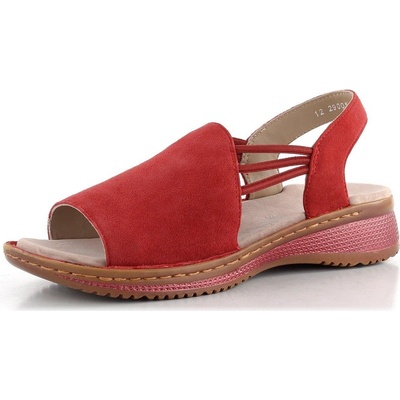 Dámské semišové sandály v červené barvě s postranními gumičkami pro snadné obutí.