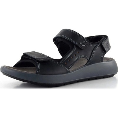 Pánské kožené sandály v černé barvě, se třemi upínacími pásky na suchý zip a příjemně měkkou nášlapnou stélkou.