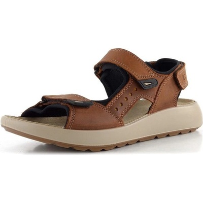 Pánské kožené sandály v hnědé barvě, se třemi upínacími pásky na suchý zip a příjemně měkkou nášlapnou stélkou.